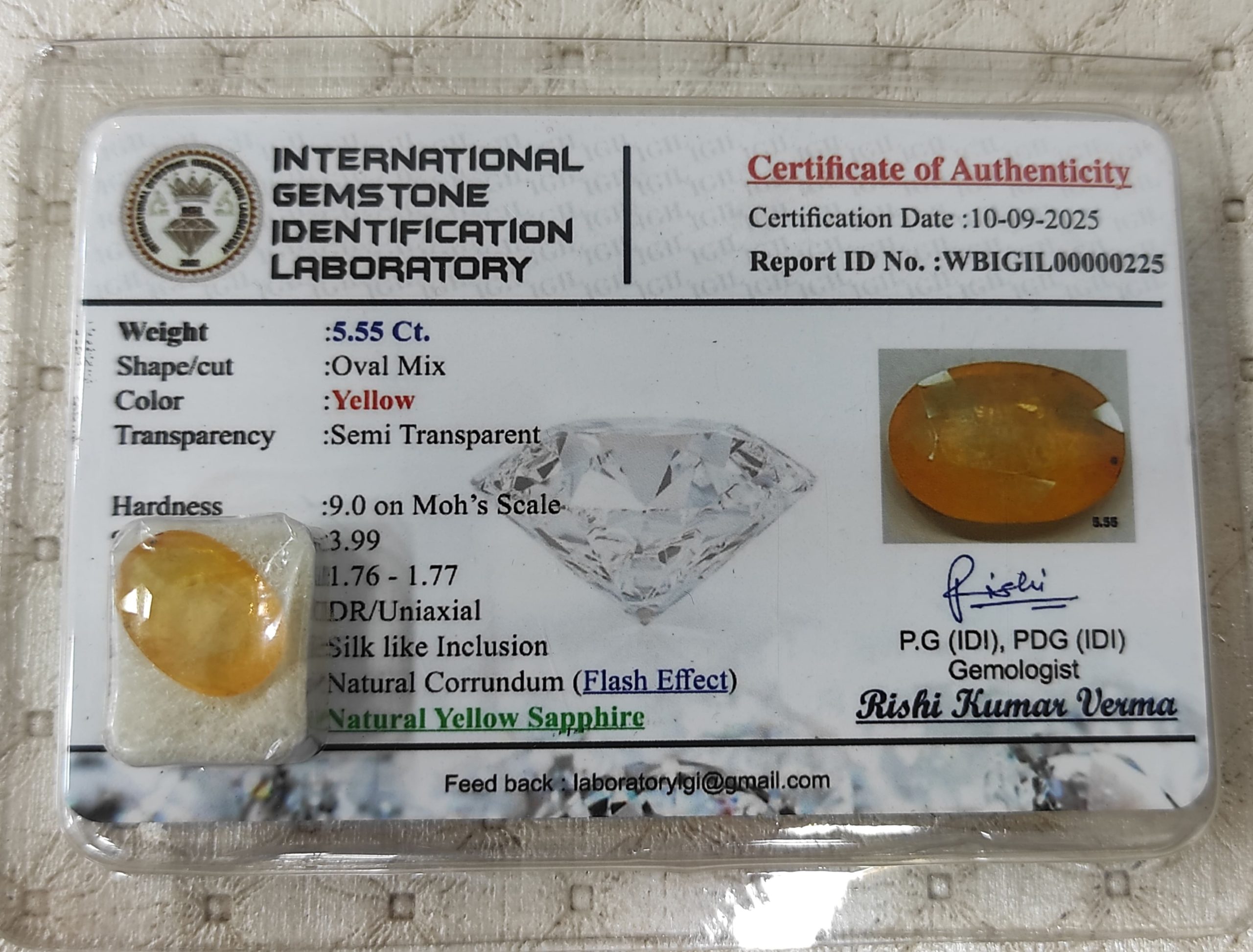 YELLOW SAPPHIRE POKRAJ NATURAL 6.30 Carrat